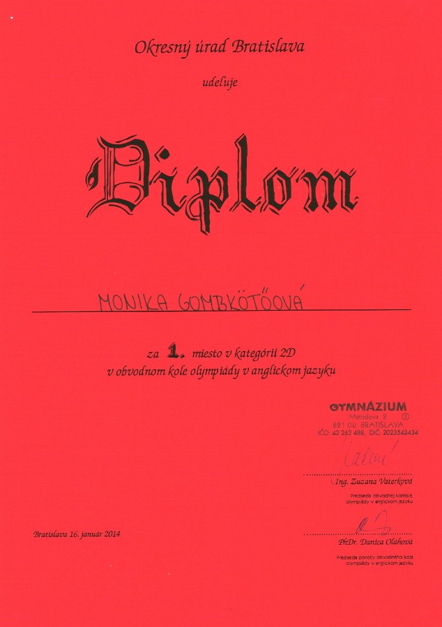 Pri príležitosti Dňa učiteľov, 25. marca 2014, oceňovala starostka Mestskej časti Bratislava – Staré mesto, pani Tatiana Rosová, najúspešnejších, najaktívnejších…